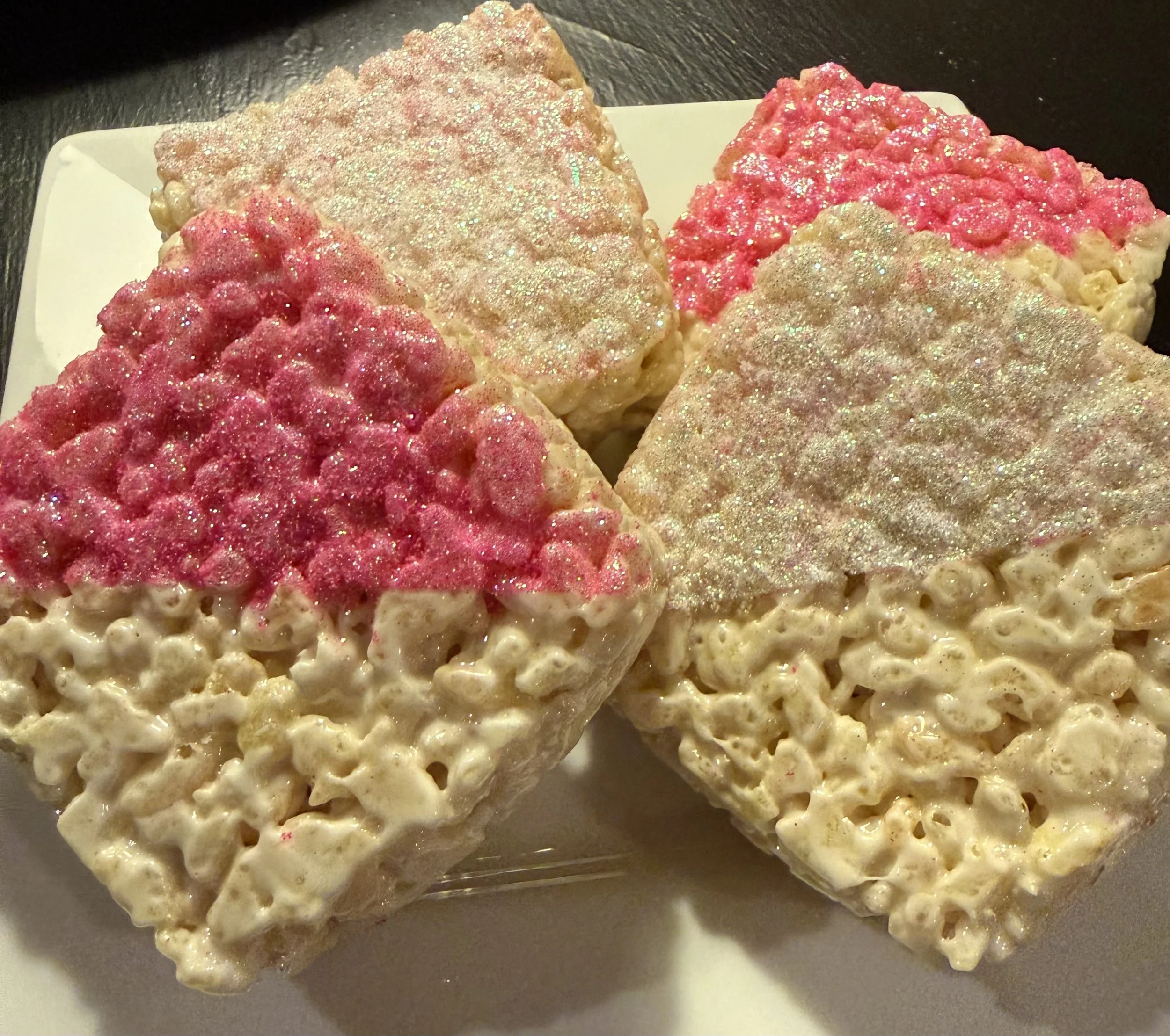 Elevate your snack game with our Rice Krispie Treats, where classic meets chic! Indulge in these delightful Rice Krispie Treats to bring a sparkle to your special occasions or everyday moments. They're not just treats; they're joyful bites of happiness. Available in plain, glitter, or chocolate-dipped to match your event color-scheme.